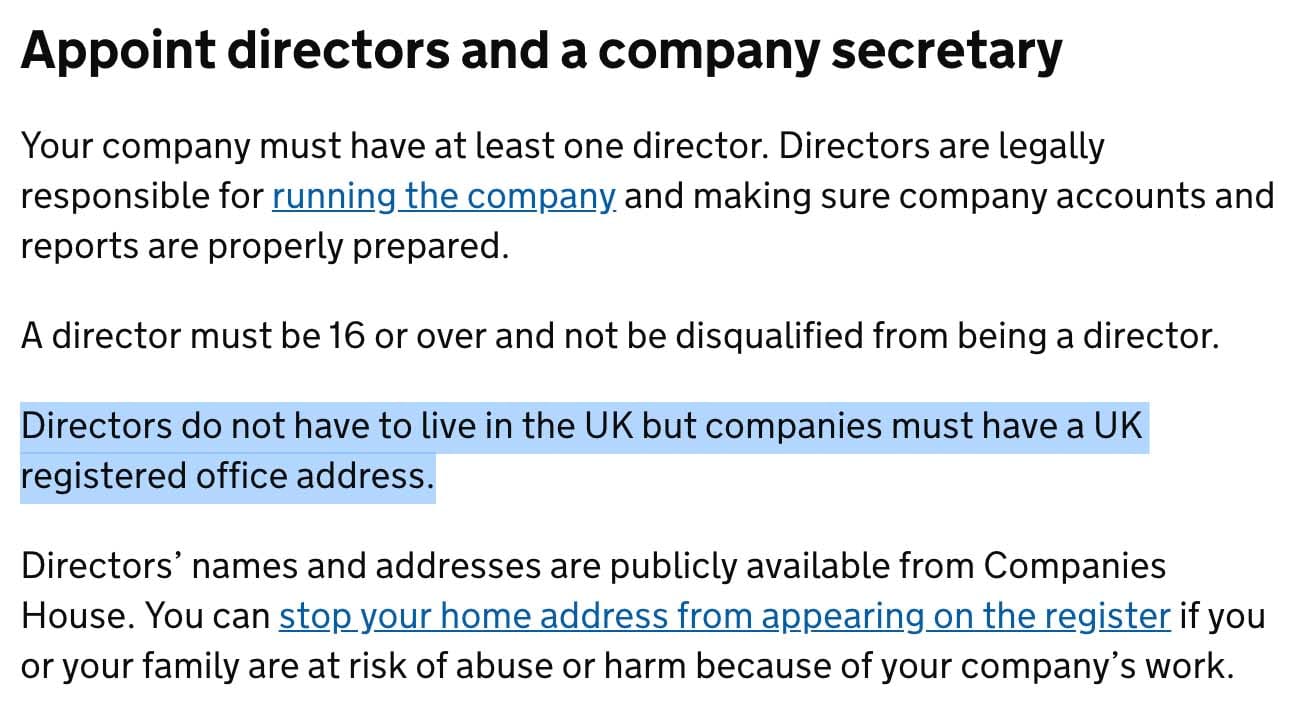 - Registration address – it has to be on the territory of the United Kingdom. Most of the accountants offer this as a service called “virtual office”. In practice, they allow using the postal address and collect your snail mail, if necessary. I recommend comparing rates of virtual offices, prior to LTD registration.