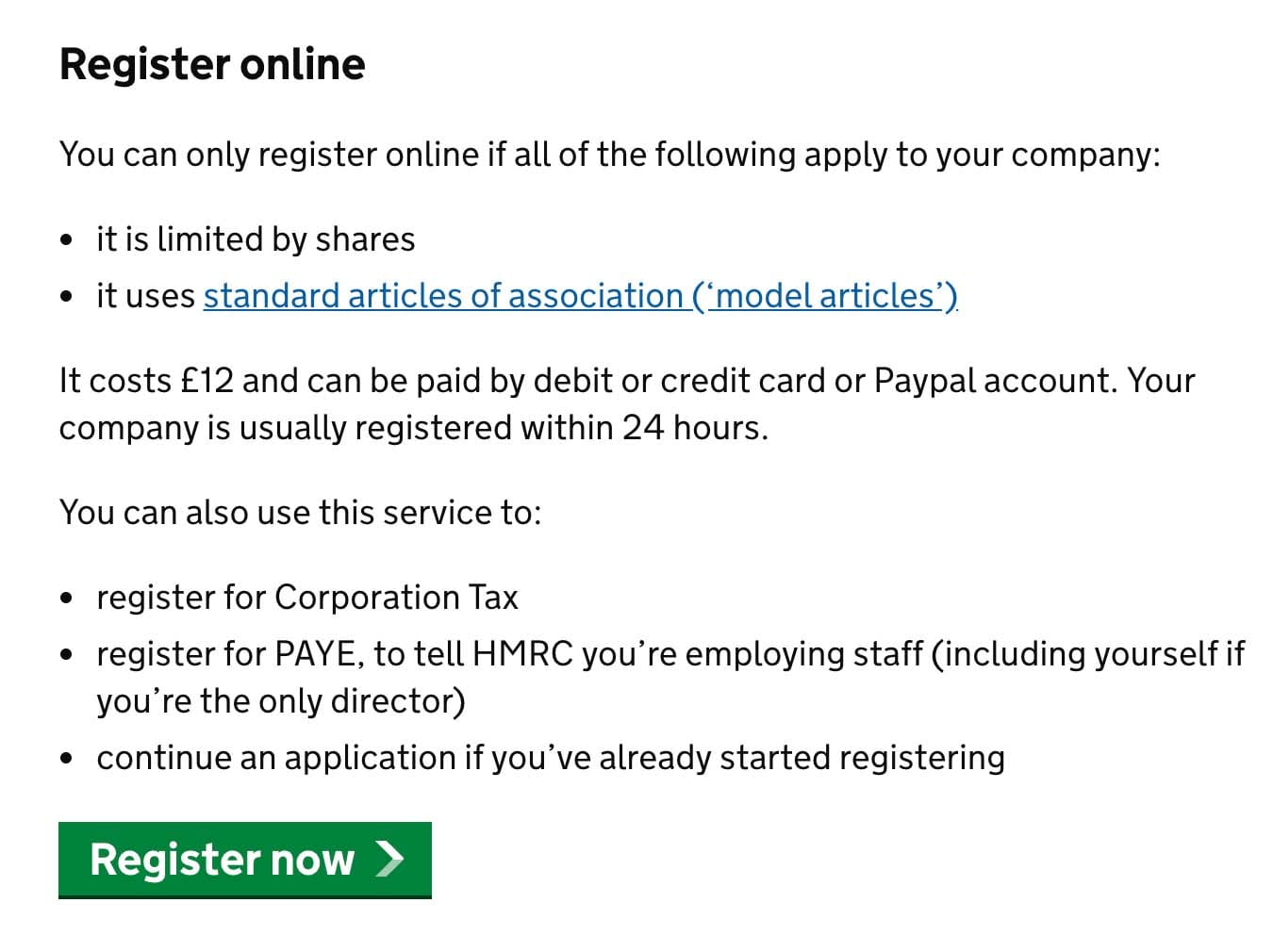 - Registering fee in Companies House is 12 GBP. You can pay with card or PayPal and the confirmation comes within 24 hours.