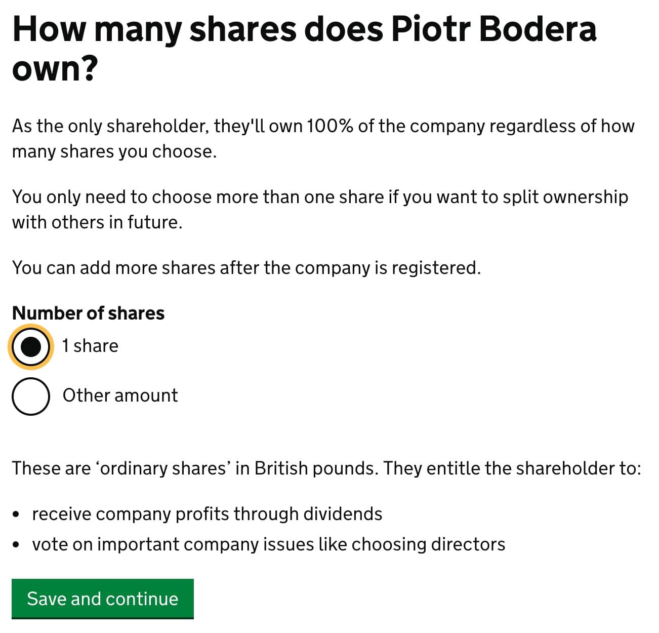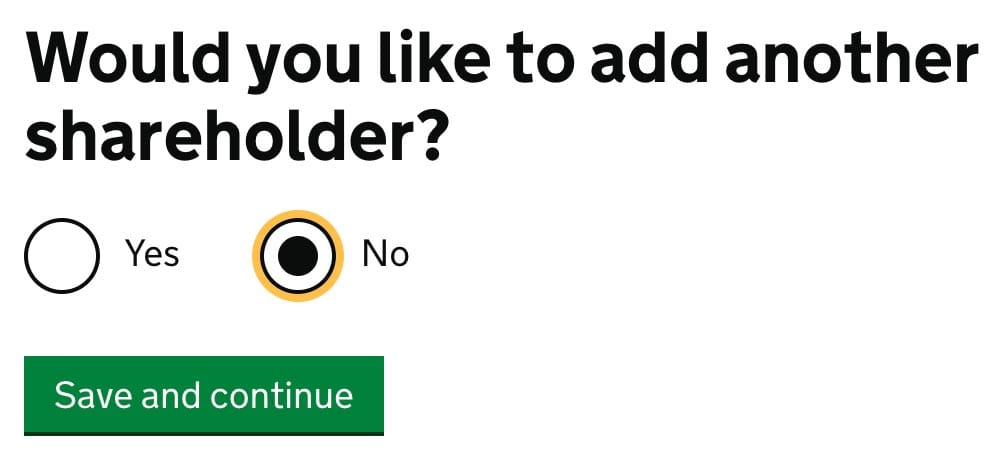 Would you like to add another shareholder?