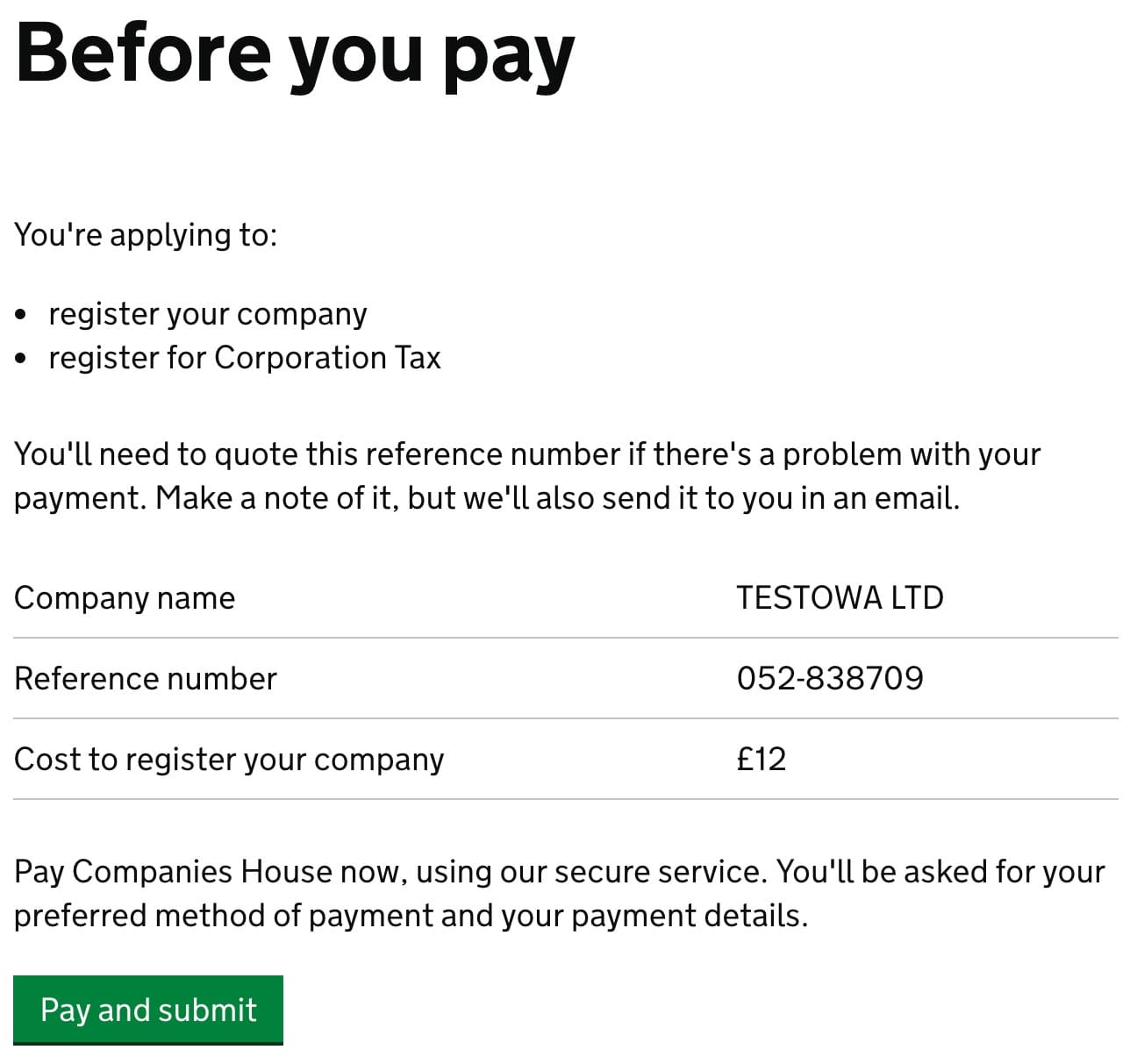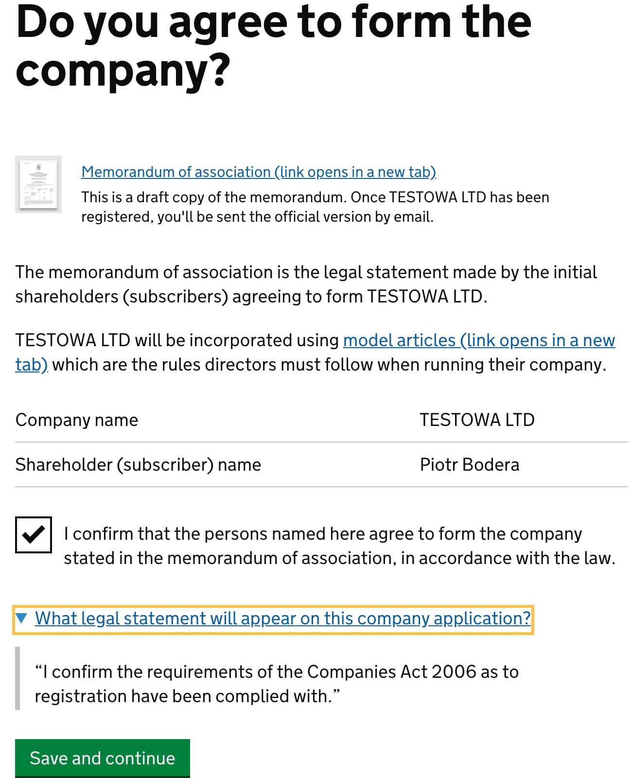 This is one of the last steps before you set up your company. Every company needs to have a Memorandum of association. The Companies House is giving you a standard template, that is sent to your email after registration.