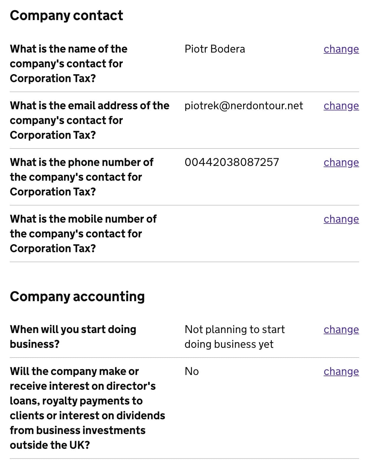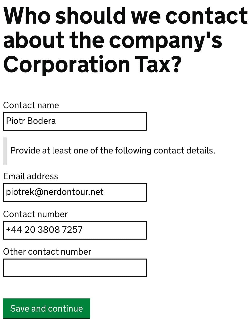 Type contact to the person responsible for taxes in your company. If it’s your one-person business, provide your contact. More complex organisations need to consult with an expert.