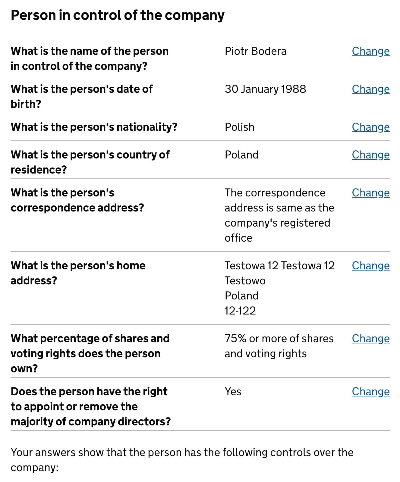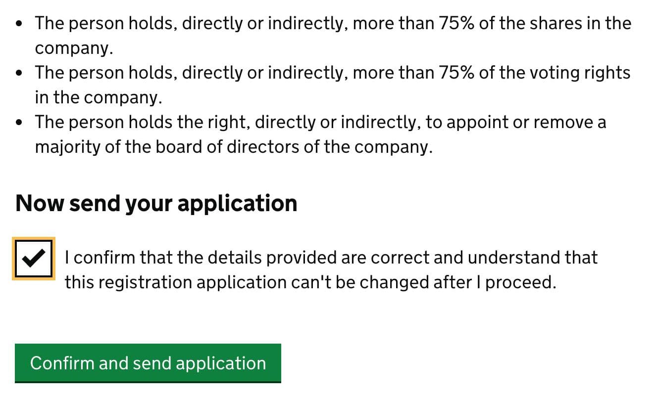 Check and confirm details of the person in control of your company