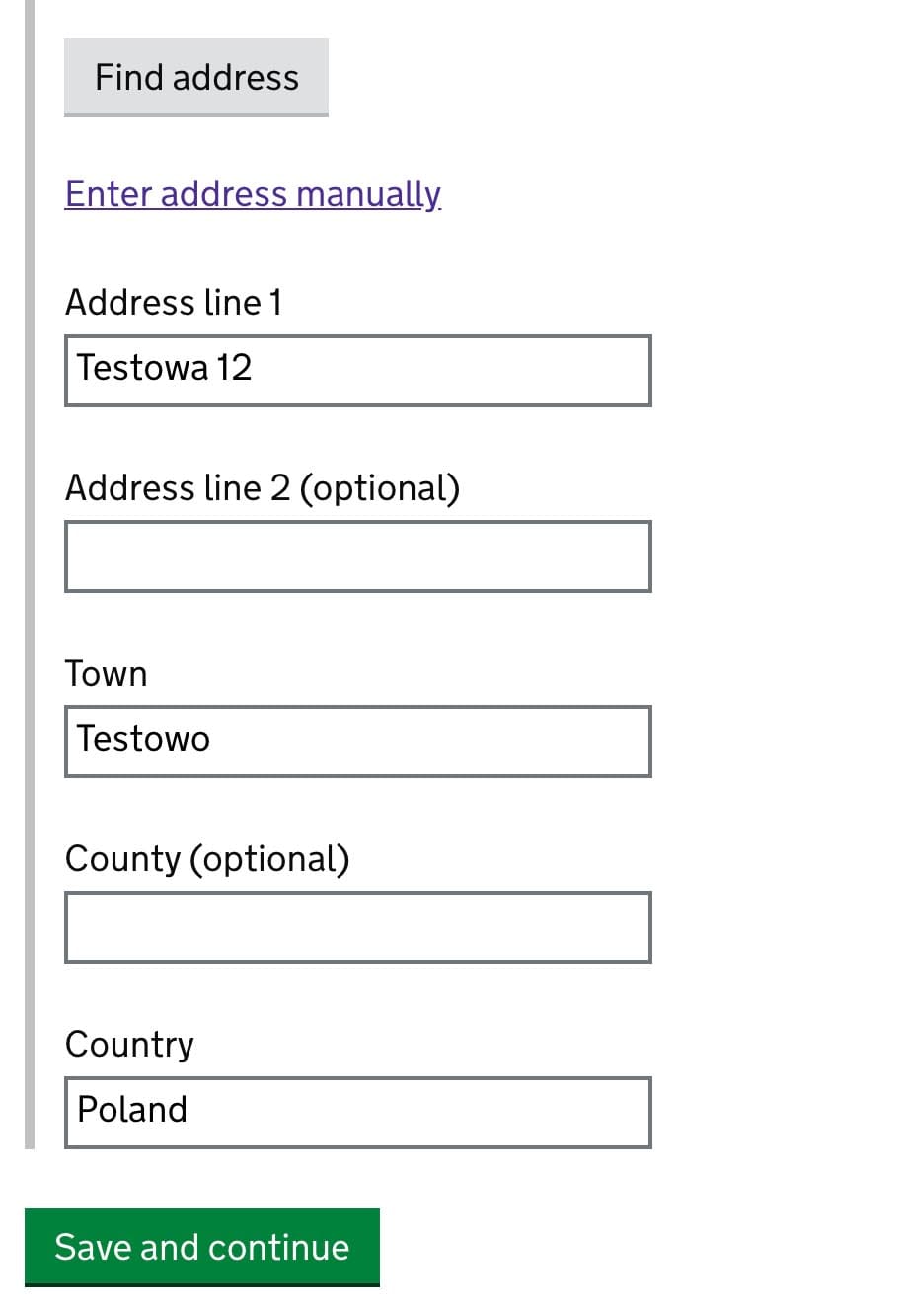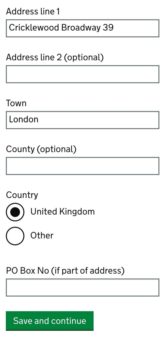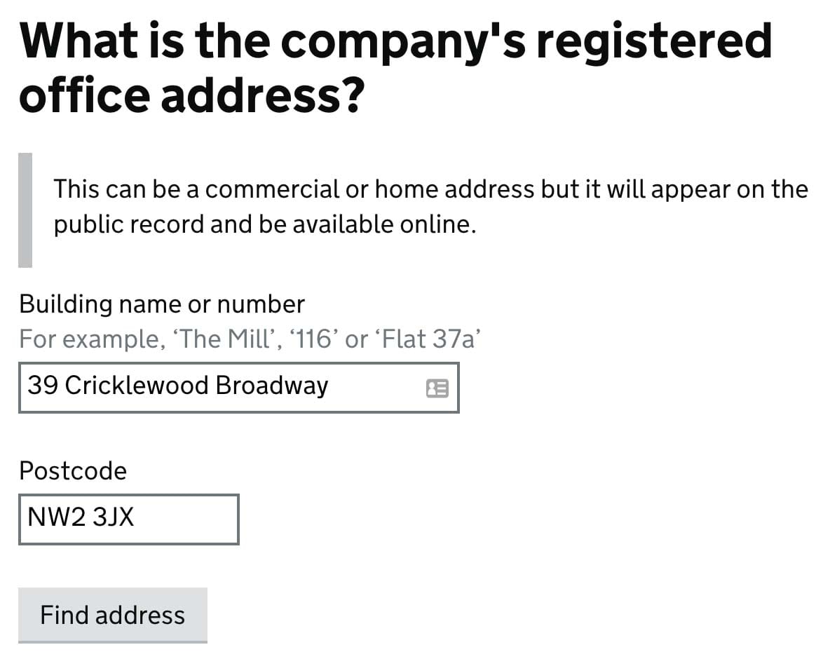Provide your registered address on the territory of the United Kingdom. After you type building name or number and postcode click Find address.