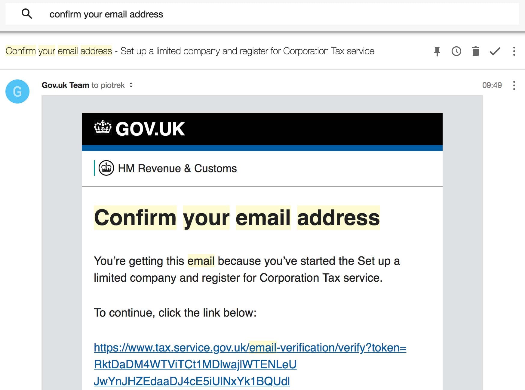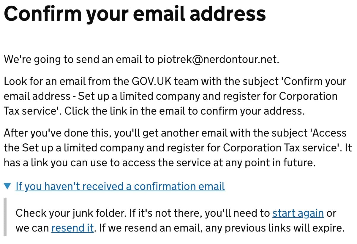 If you don’t see the message, try to find it with “confirm your email address” phrase. The design of British Governmental emails is neat, so you shouldn’t have any issues looking for it.