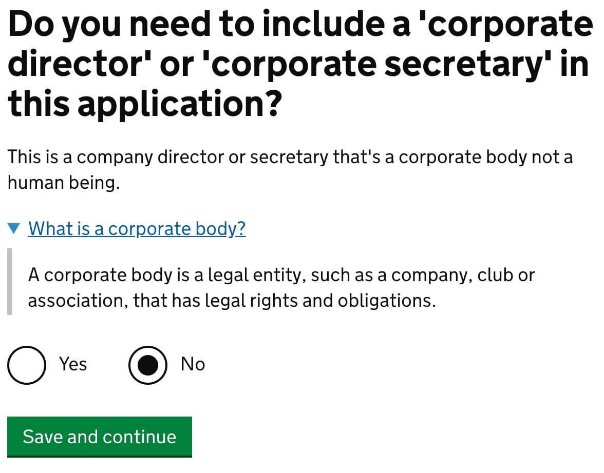 Do you need to include a ‘corporate director’ or ‘corporate secretary’ in this application?