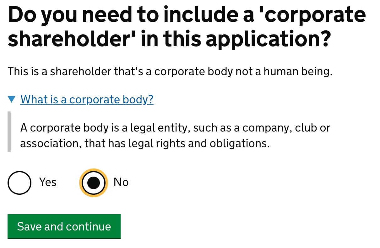 Do you need to include a ‘corporate shareholder’ in this application?
