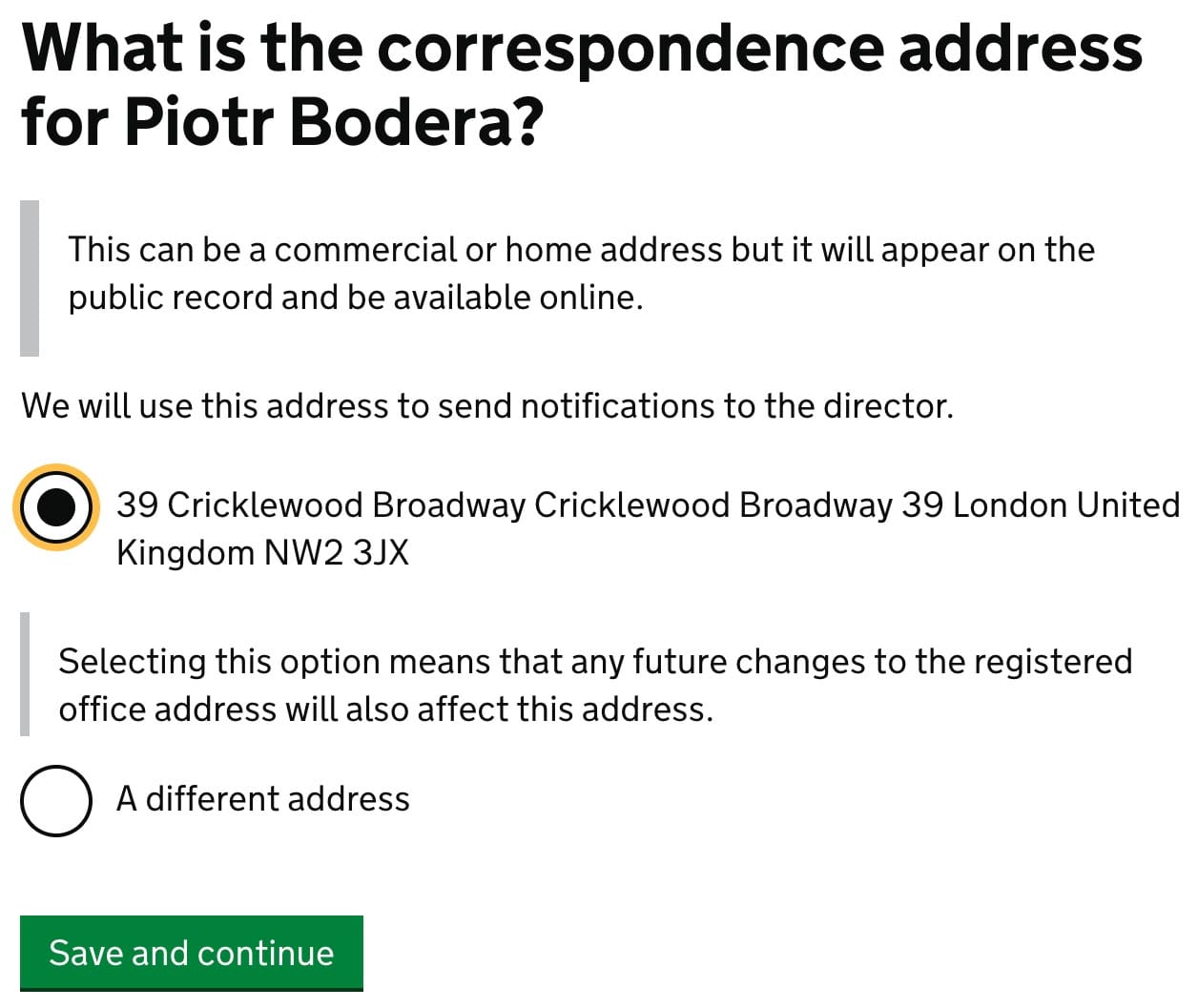 If you already have a virtual office where they collect your mail, mark its address. If not, type any other address, where you can receive snail mail. Keep in mind, that this address is publicly visible on the Companies House website.