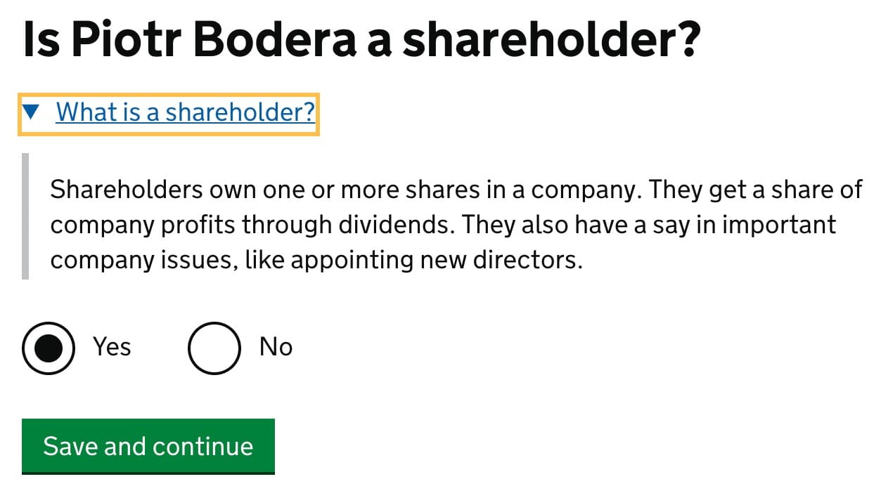 Mark Yes, to confirm that you are the shareholder in your company.
