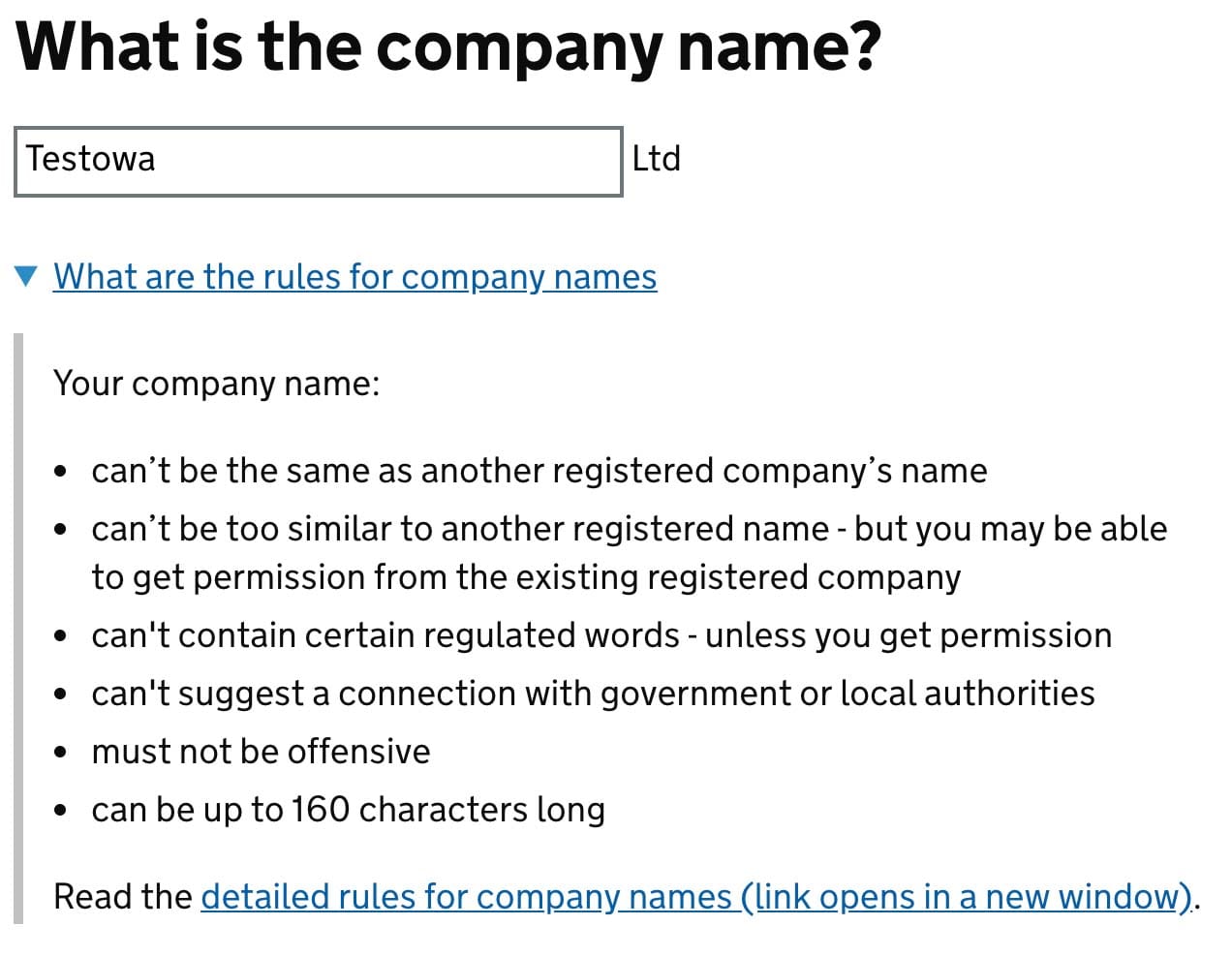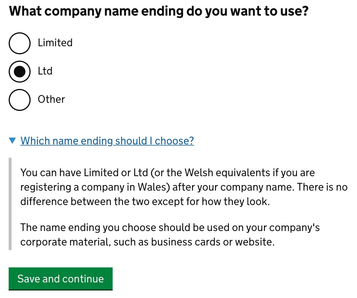 Next choose shorter Ltd, instead of full Limited. Formally there’s no difference, but once you choose one, you are obligated to stick with it.