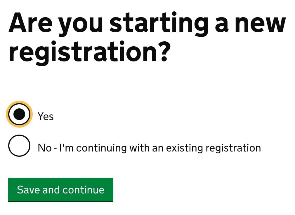 Are you starting a new registration?