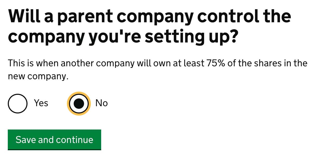 Will a parent company control the company you’re setting up?