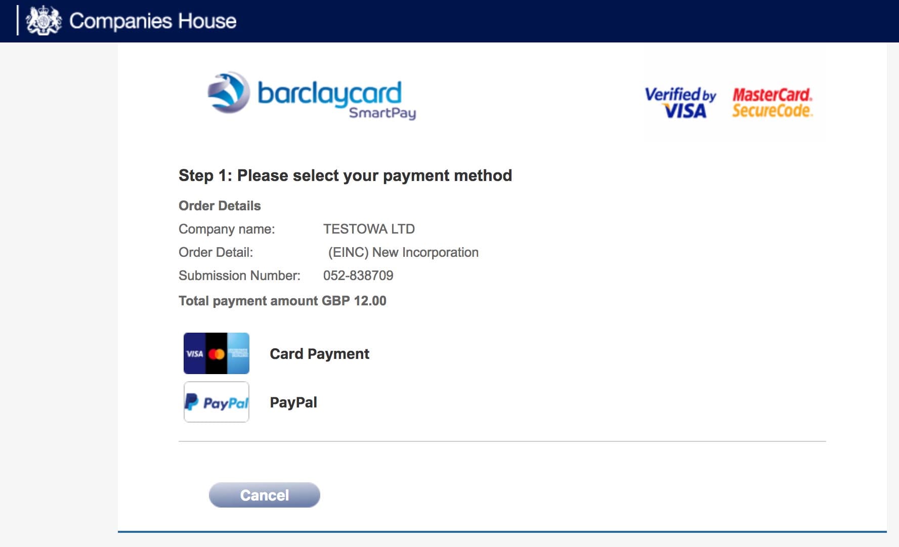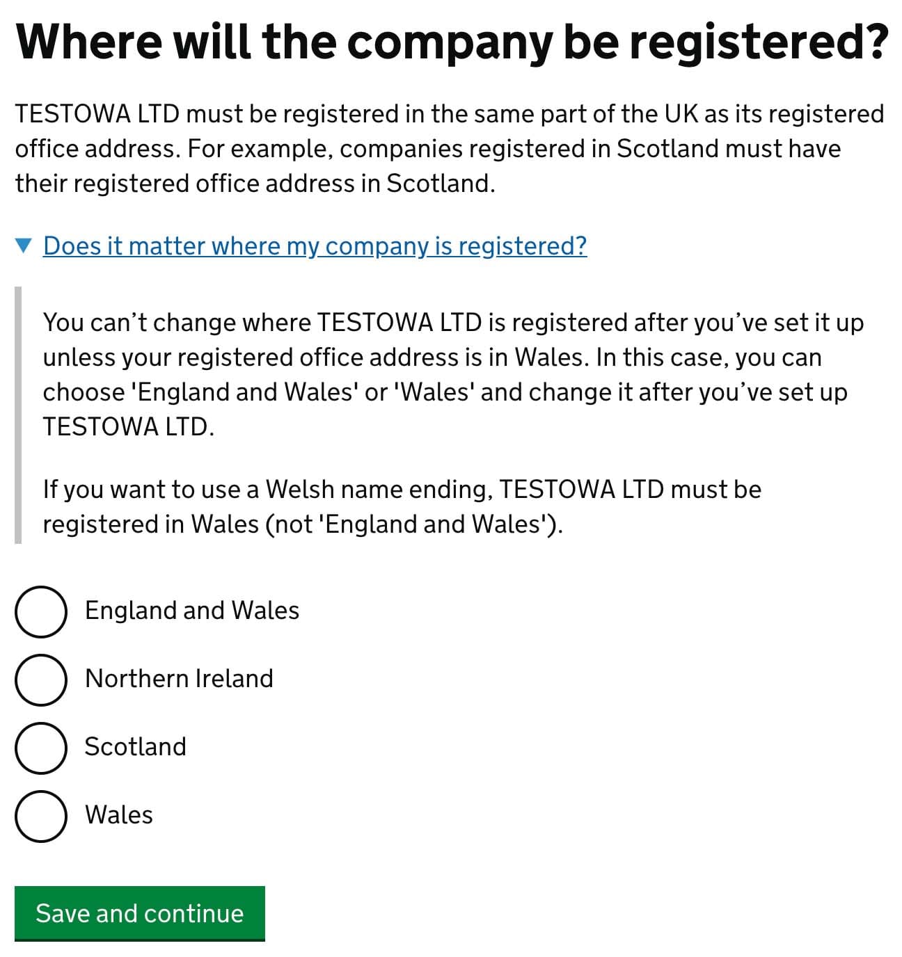Chose the region, according to your registered office address. In my case, it is England and Wales.