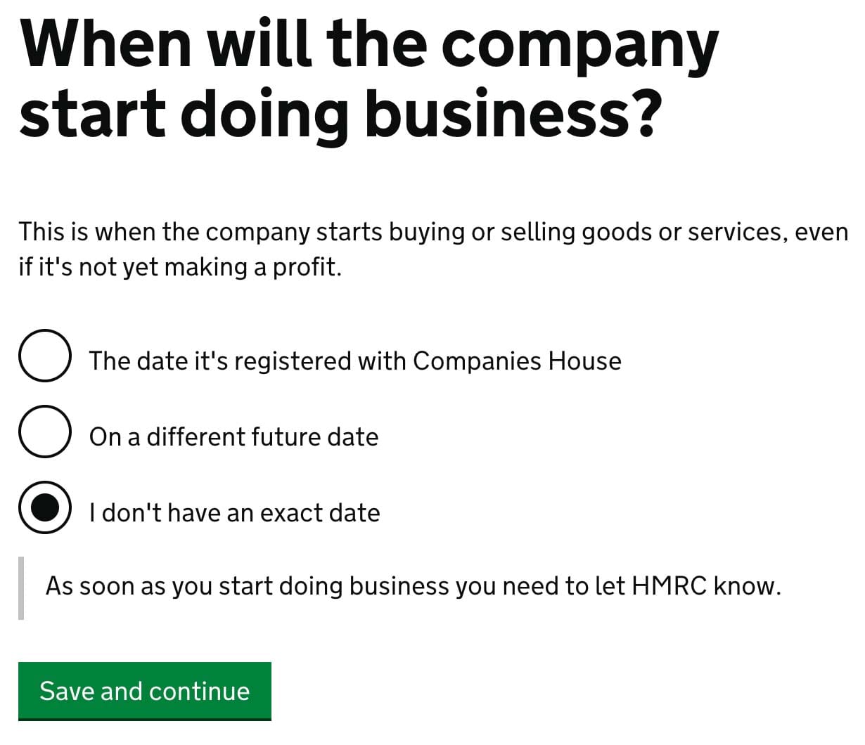 The easiest choice is The date it’s registered with Companies House. This way HMRC will get the info automatically.
