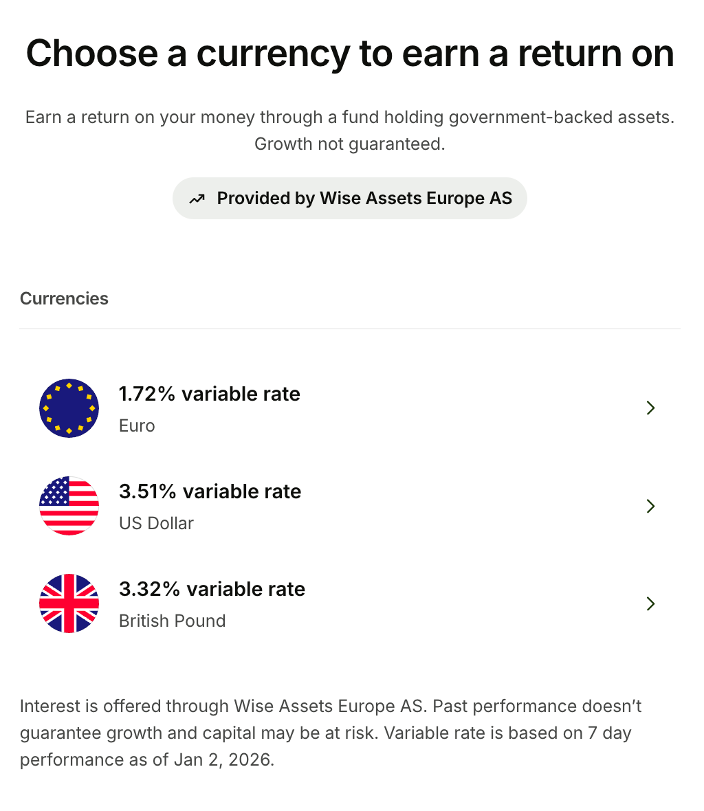 The best way to check if you and your company are eligible is to log into your Wise or Revolut account and look for Interest or Flexible Cash Funds.
