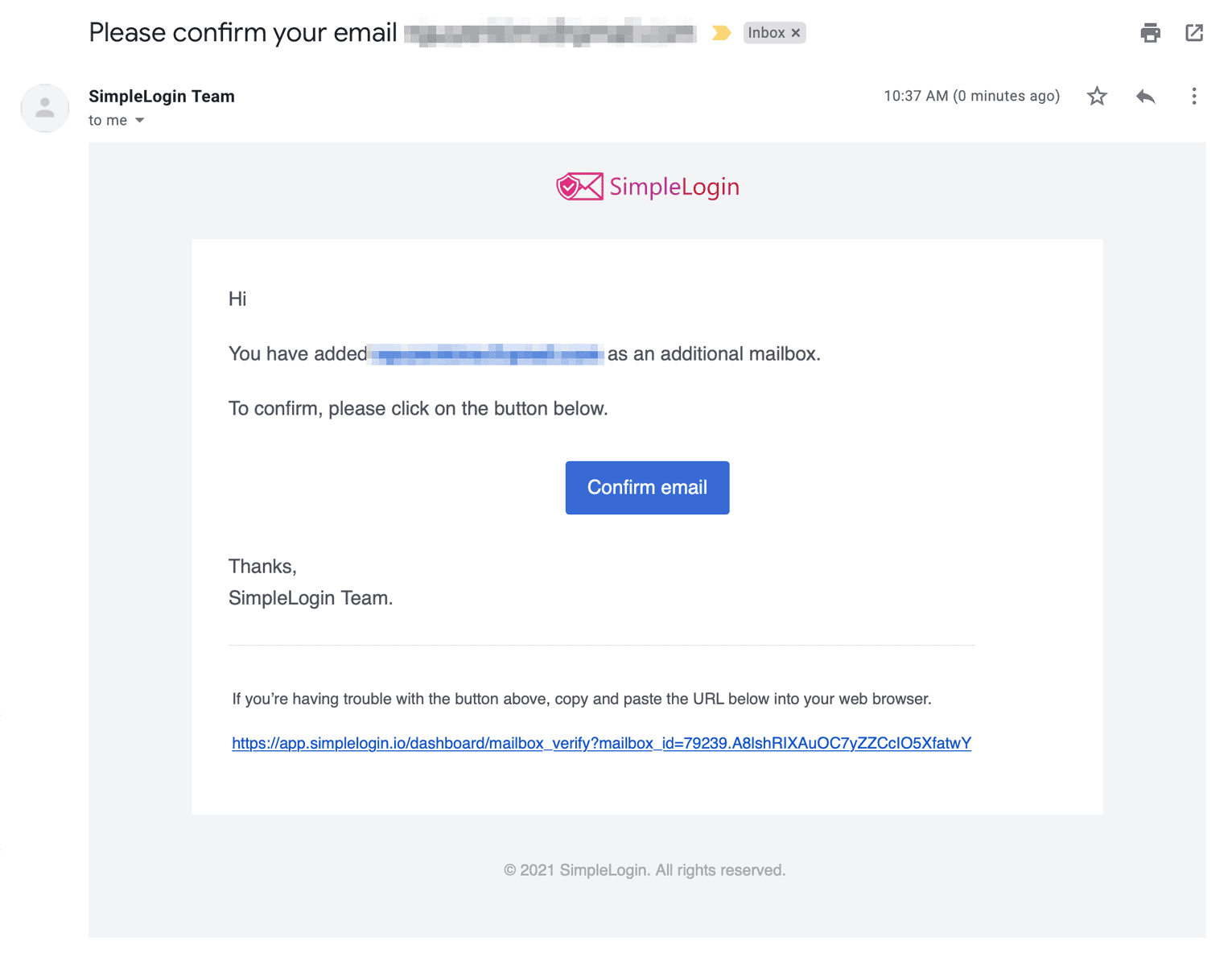 - Go to your RSS Reader and refresh the new Atom feed. Confirm the Mailbox by clicking the link sent by SimpleLogin.