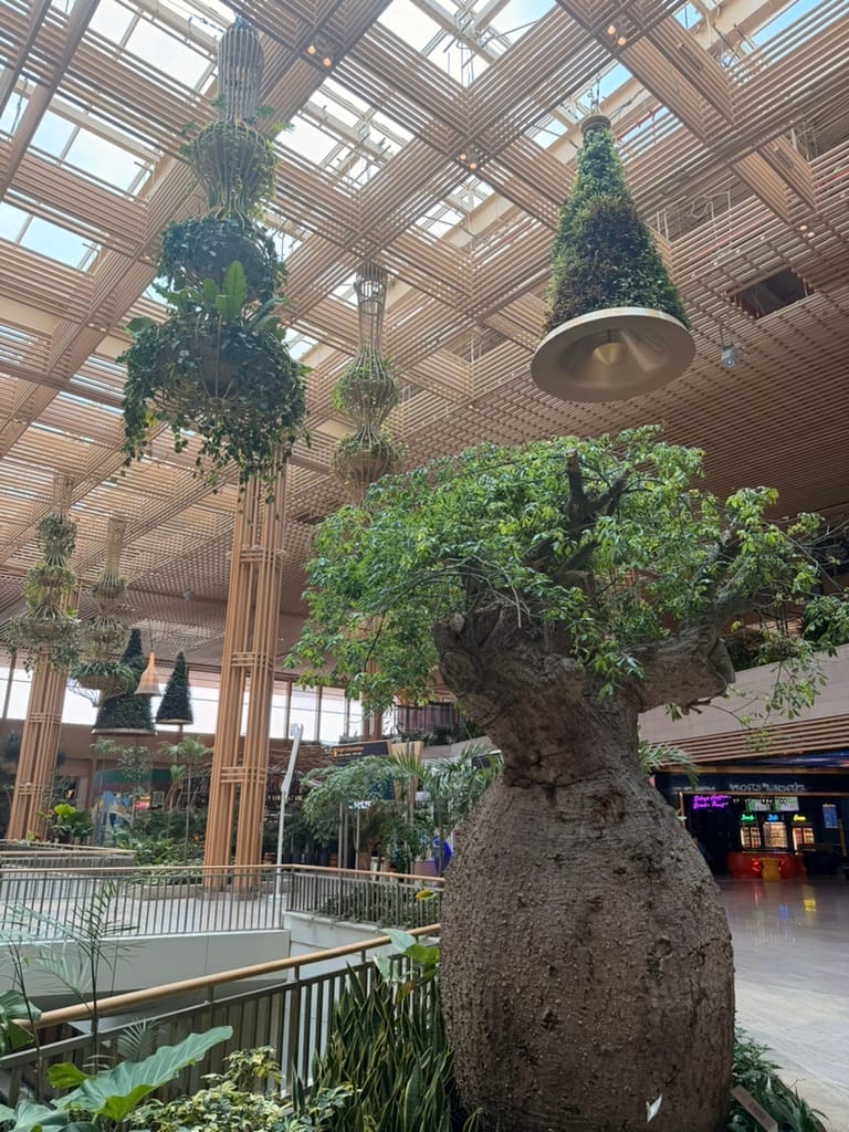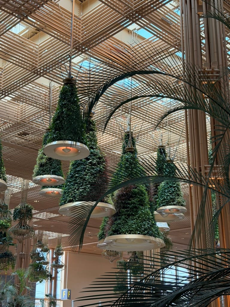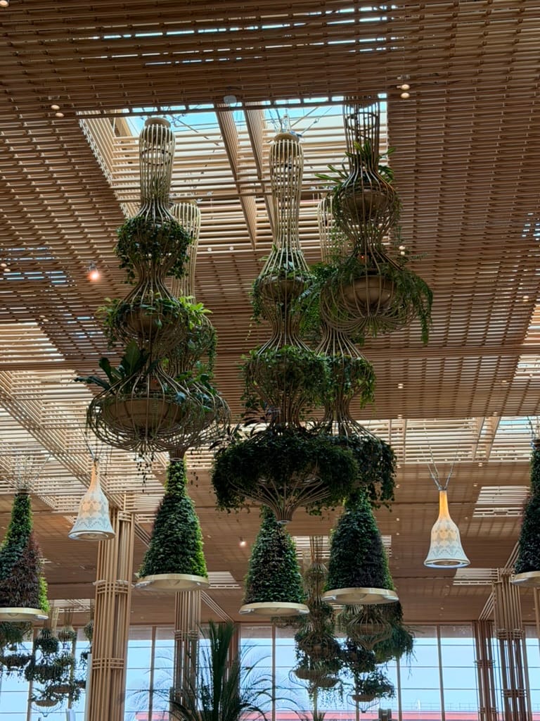 Bangalore's airport specifically caught my eye. Due to all the nature! Not some fake plastic plants. But an actual, full-scale garden. There were giant lamps covered with vegetation. A small waterfall inside the lobby. And a proper outdoor section with birds flying around.