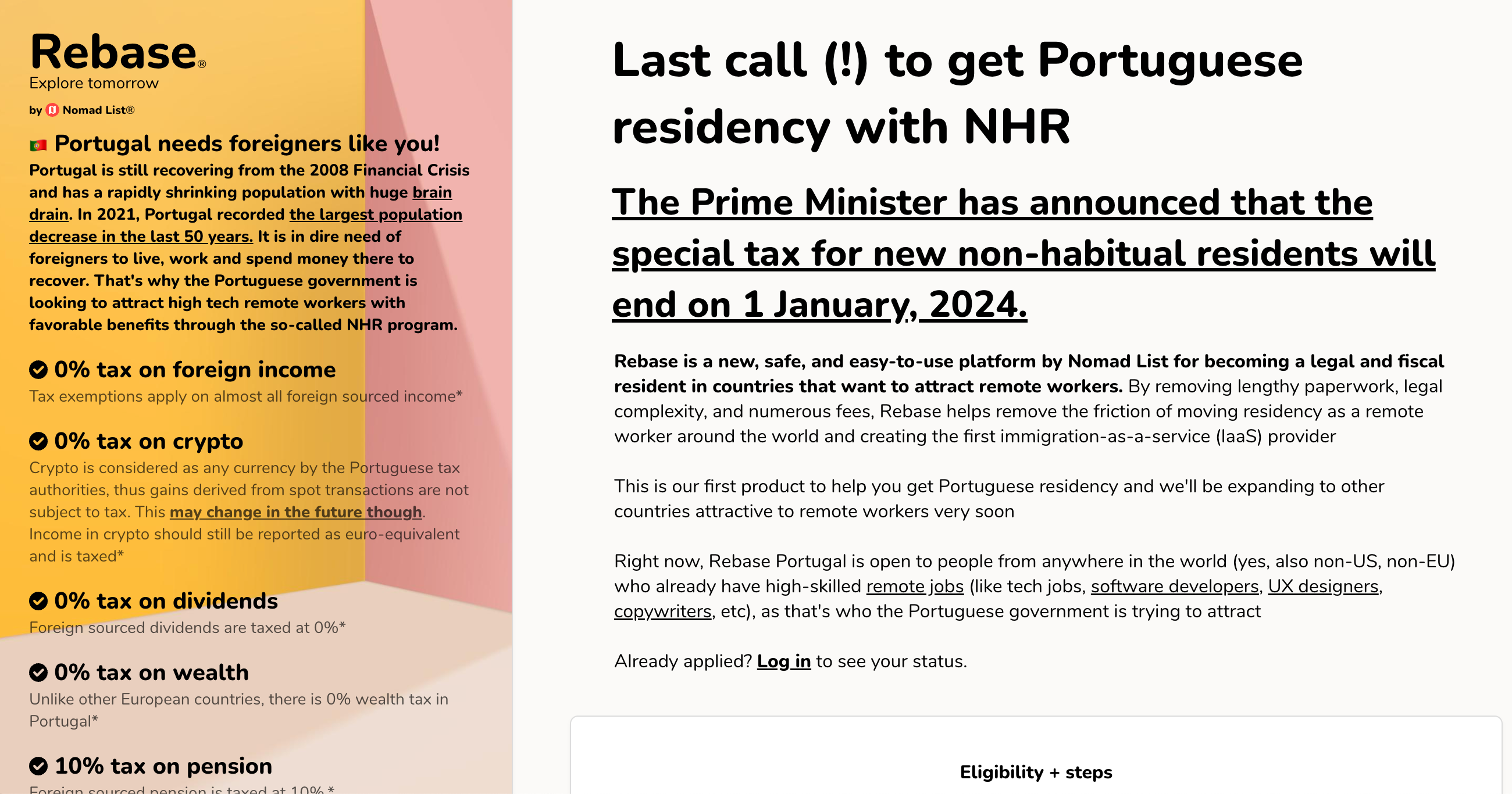 ❌ Permanently closed https://t.co/PL9rrxYfgp applications now after 2 years of running because 🇵🇹 Portugal's special program to attract immigrants called NHR ends January 1, 2024: