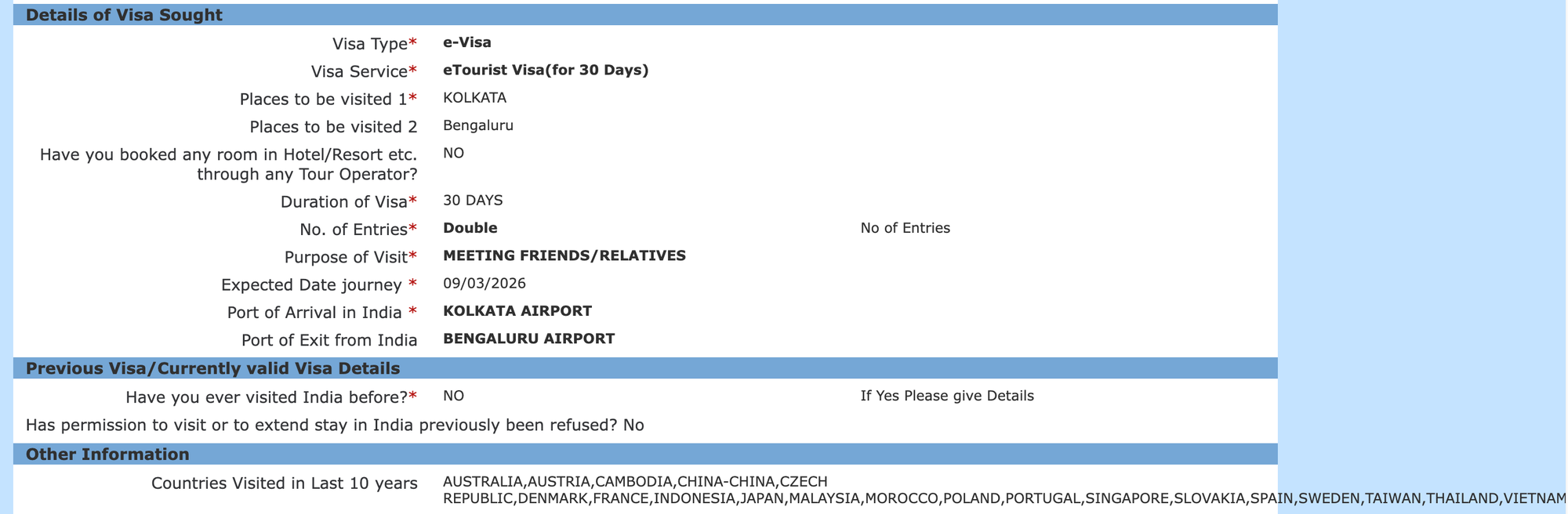 Travel visa to India