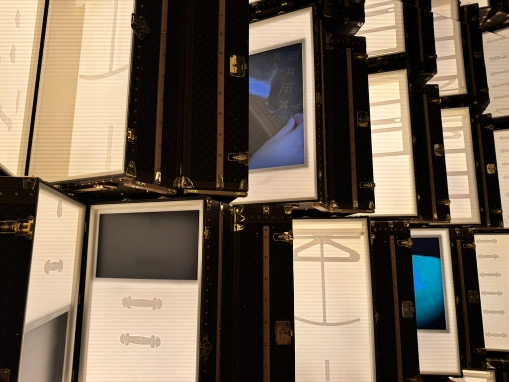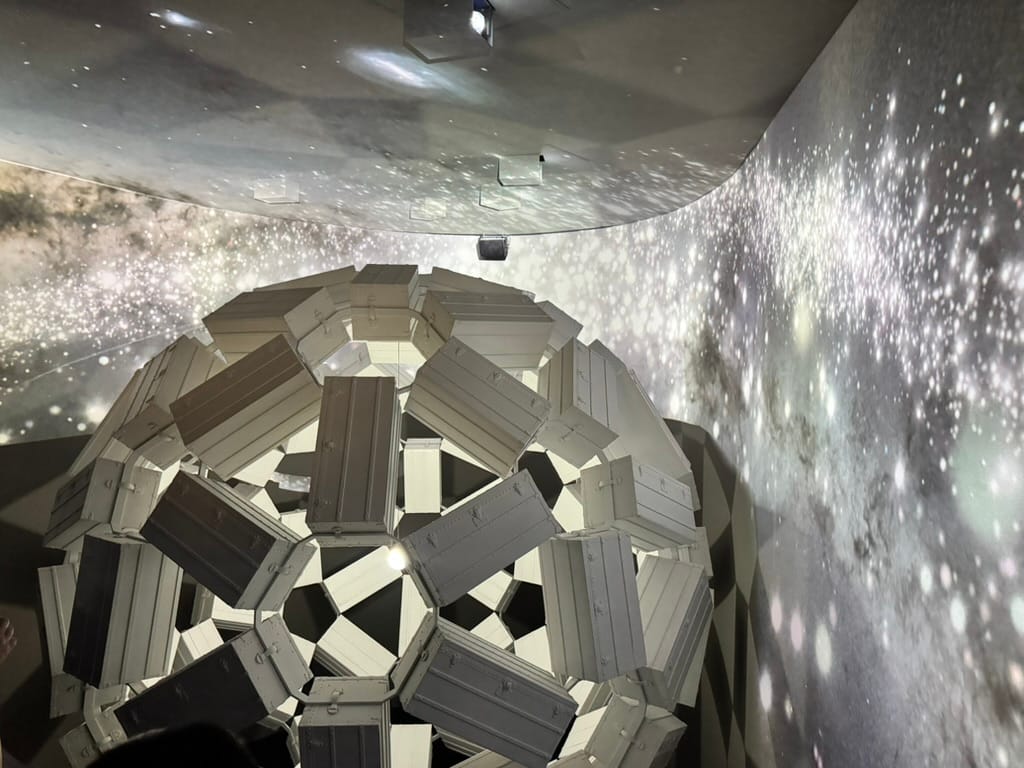 - a floating sphere made from wardrobe trunks,