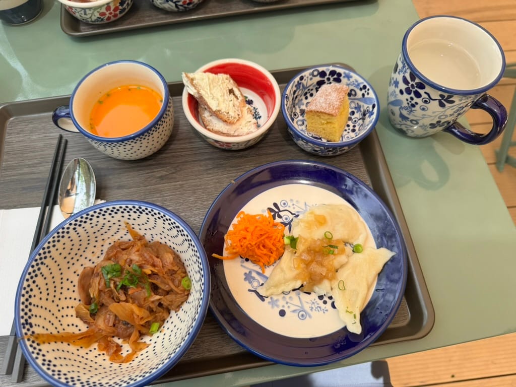 Lastly, it was time for lunch and, oh boy, the Polish chefs delivered original tastes! Bigos, the cooked, pickled cabbage was perfectly sour. Pierogi, famous Polish dumplings, were freshly handmade, and pumpkin soup warmed my belly. There was even carrot cake and kompot, the wild berry cooked juice that only grandmas are still making.