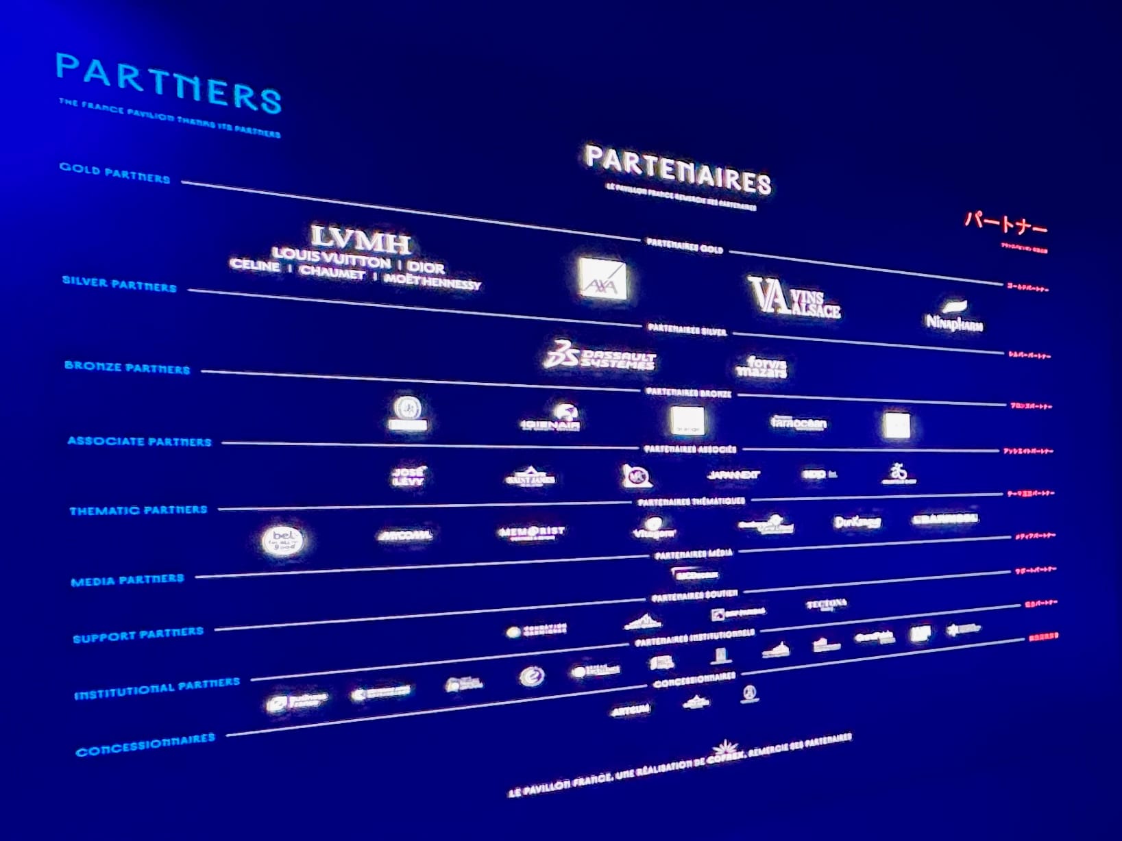At the entrance of some pavilions major sponsors were prominently displayed. South Korea was obviously backed by Samsung, among other Korean tech giants. France was sponsored by the LVMH group. Yet, there's a difference in being a sponsor and prominently promoting a particular brand.