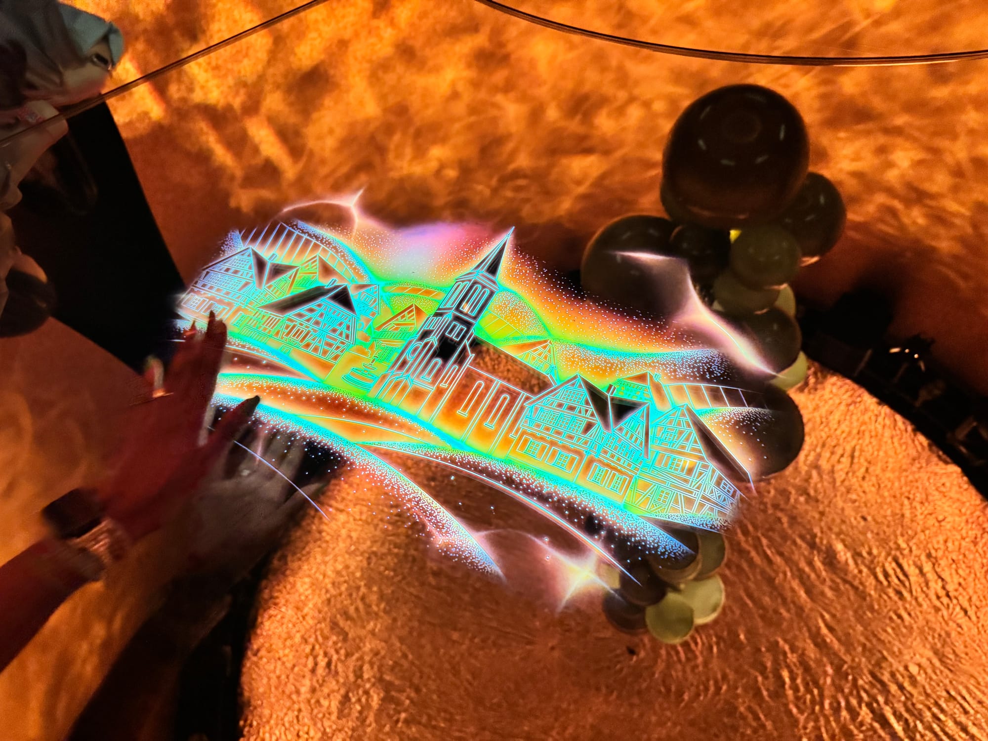 As an archipelago of islands they started with a light show and short narration that felt like Moana. Then in the next room the whole wall was a screen that acted like a magical mirror. People were dancing to cheerful tunes and our full-scale avatars were generated real time on the wall. The avatars looked like blooming trees with colorful petals flying around.