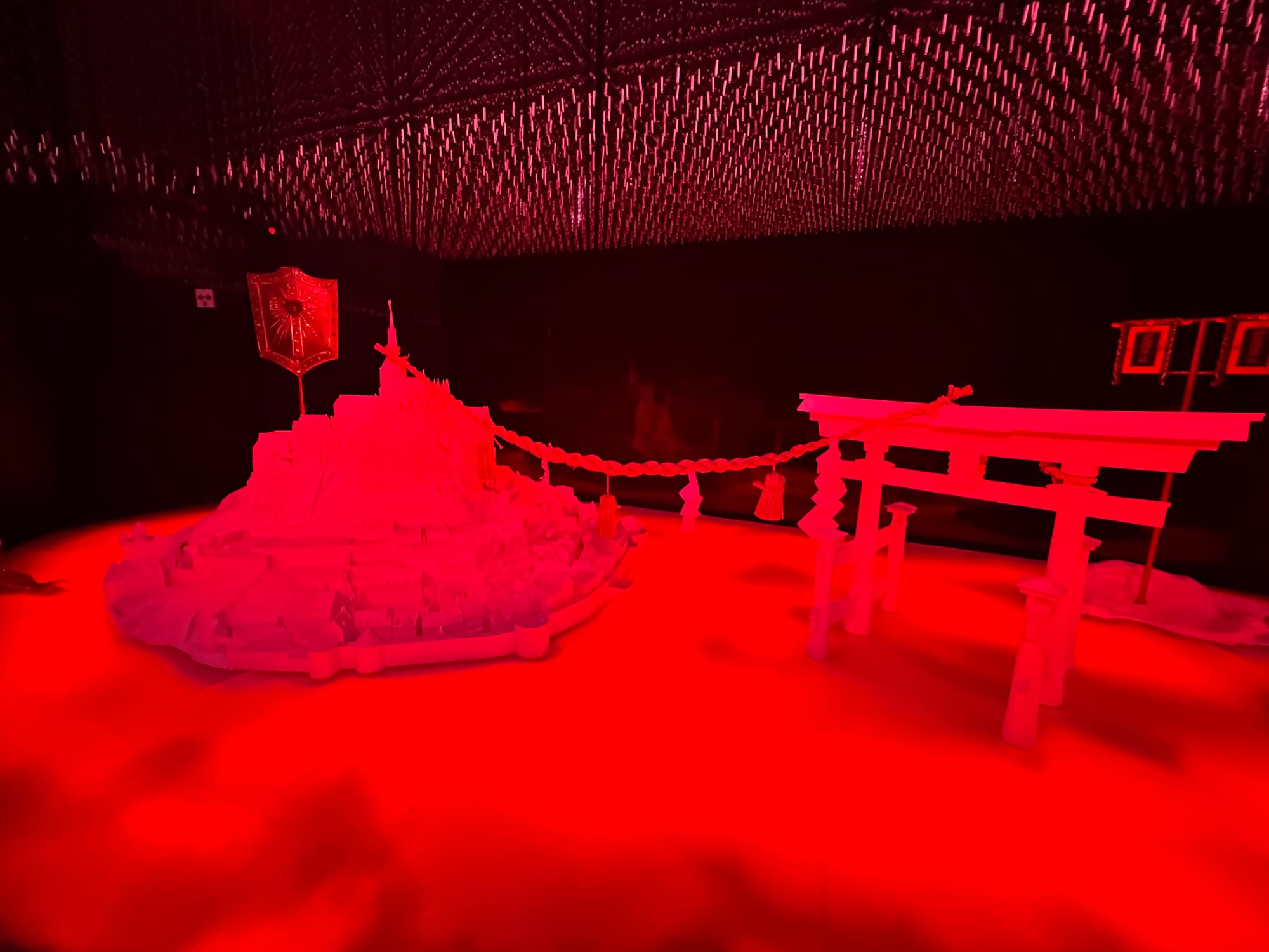 It was a giant multiple-room experience that resembled teamLab which we visited prior in Tokyo. Each room was perfectly dark with strategically arranged lights. Dim lamps, high-resolution projectors, chains of LEDs, or glass surfaces without visible edges. All creating a mystical atmosphere.