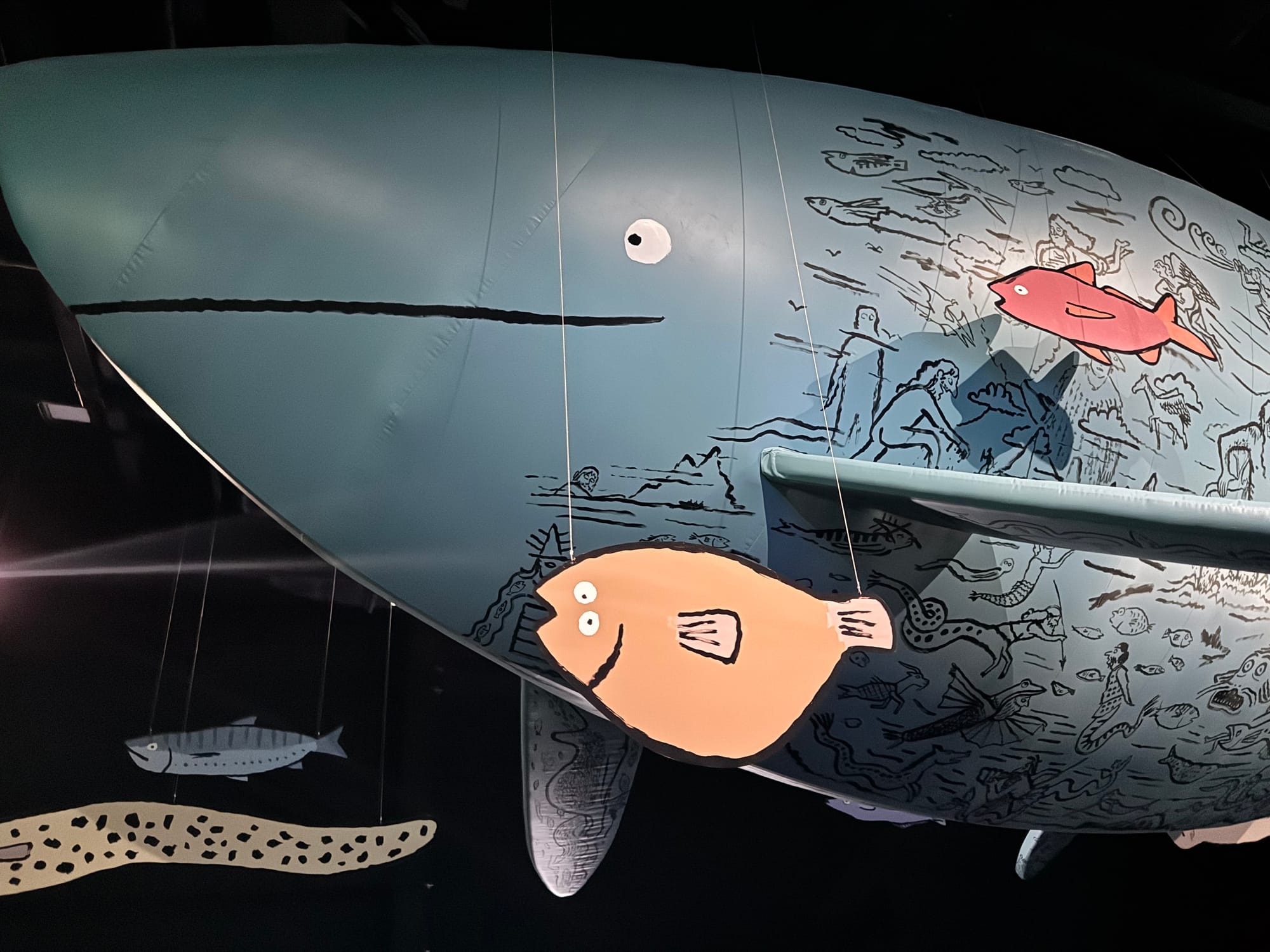 - a cartoon life-size whale art installation,